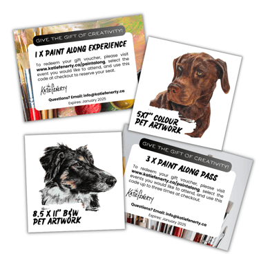 Looking for a meaningful gift for the dog / animal lover in your life? Gift them a voucher for a custom pet artwork! I'll work with the recipient to create an artwork that captures the unique spirit of their beloved companion. Something to cherish for a lifetime! I'll only have 10 of these vouchers available, reserving spaces on my custom pet artwork list for 2024. Pet portraits can be shipped internationally.